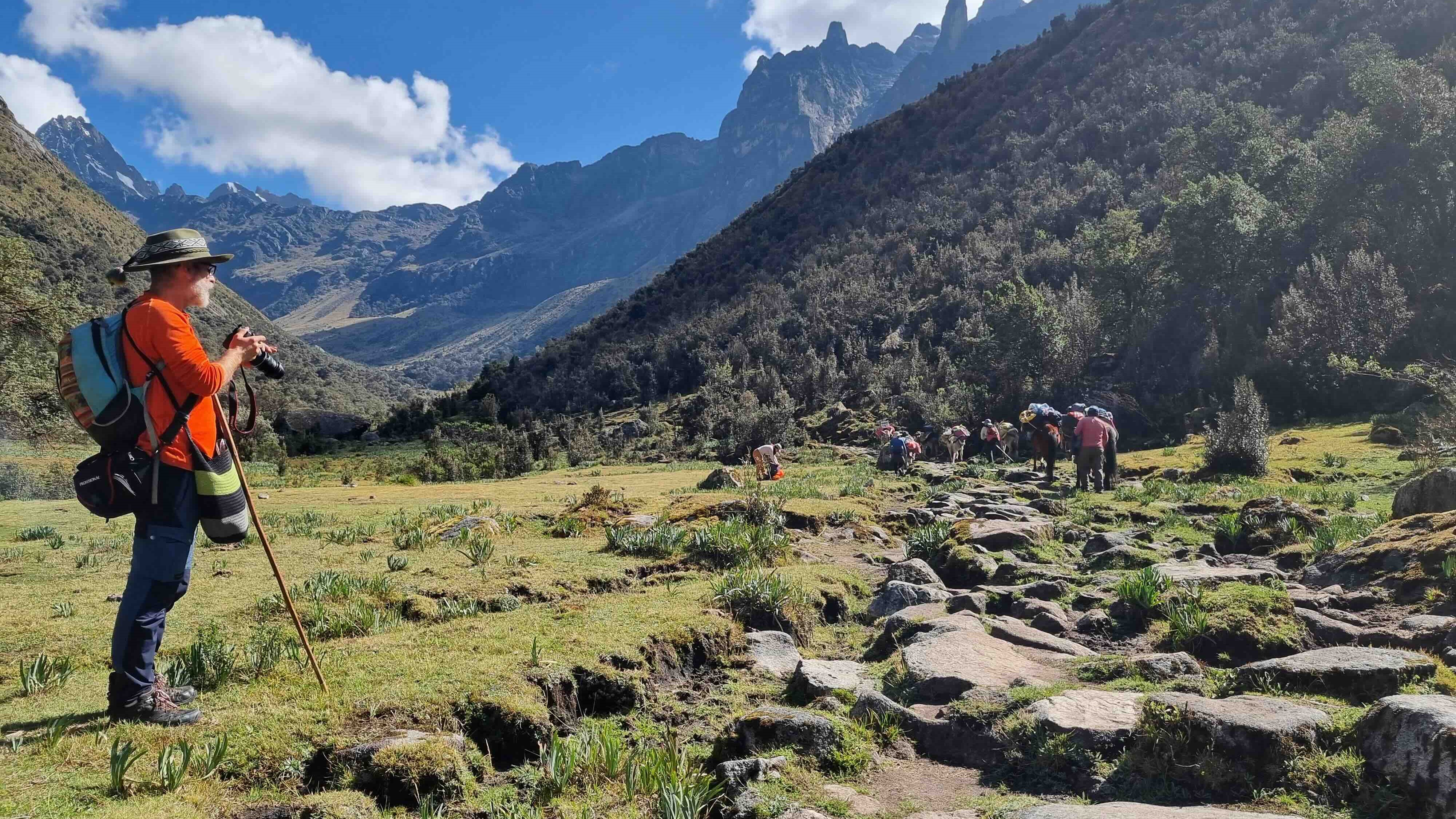 Durante los 4 días de trekking en la Cordillera Blanca, contaremos con el apoyo de un equipo especializado, compuesto por Gladys Jiménez (Perú), guía líder de trekking, junto con Geonela Díaz (Perú), guía y cocinera de expedición de montaña, y tres arrieros (muleros), quienes nos brindarán deliciosas comidas, orientación e interesantes historias de la zona. Como lo hacían los abuelos y abuelas en su época, caminaremos con el apoyo de llamas y burros que cargarán nuestras mochilas, liberándonos para disfrutar del sendero sin cargas. El segundo día en la montaña estará dedicado a realizar ofrendas y continuar con el proceso de aclimatación.